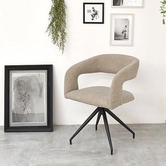 Brucke(ブリュッケ) ラウンドチェア|回転式 ファブリック×スチール脚 モダンチェア