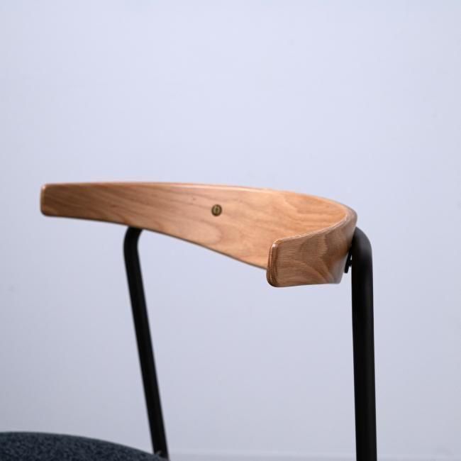 背もたれにはオーク材を使用し、自然な木目が空間に温かみを与えます。