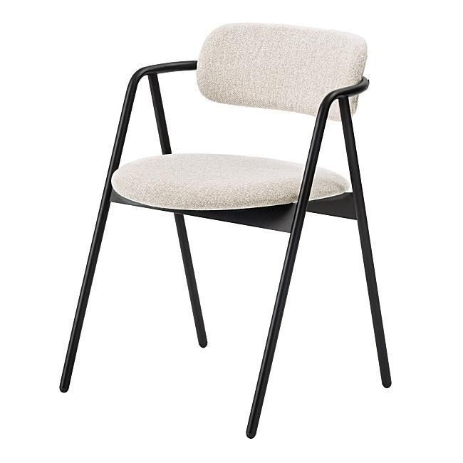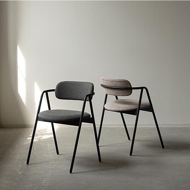 ブラックスチールの脚部がシャープな印象を与え、直線と曲線を組み合わせたモダンデザインが空間にスタイリッシュなアクセントをプラスします。