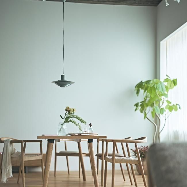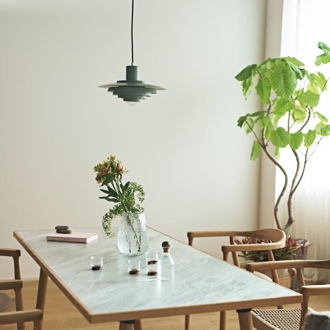 マットグリンカラーはノスタルジックな雰囲気を感じさせ、柔らかな光が空間全体を包み込み、温かみのあるムードを演出します。