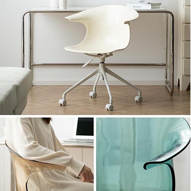 強度の高いポリカーボネート製の座面は背もたれと一体型で、ゆとりを持って座ることができます。