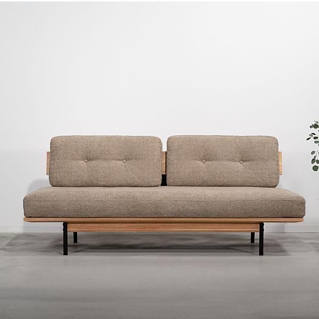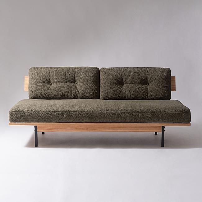 天然木×アイアンのフレームに背面クッションを立て掛けた、少しユニークなフォルムの「Form 3人掛ソファ Myrtle(マートル)」が登場しました。