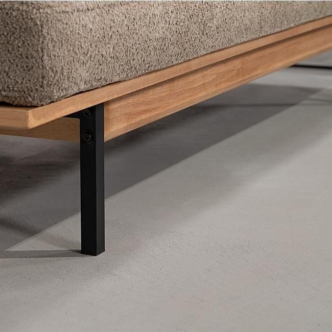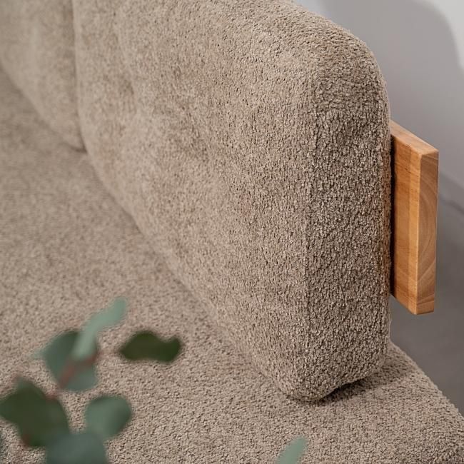 フラットな座面はスタイリッシュなフレームと調和し、ブークレ生地を使用しているため、手触りがふわふわで心地よいです。