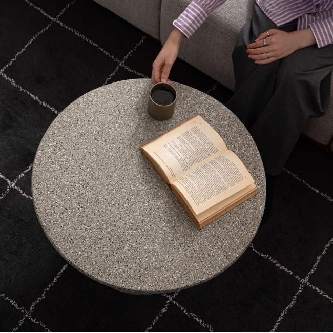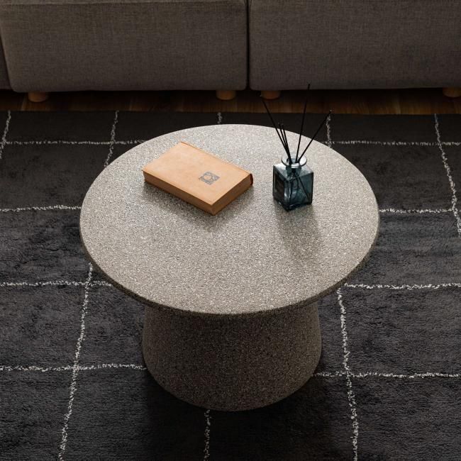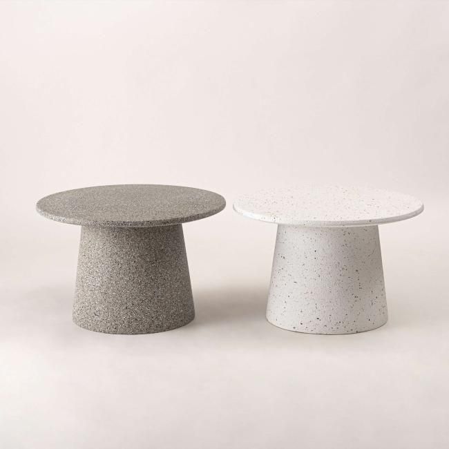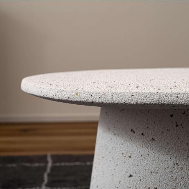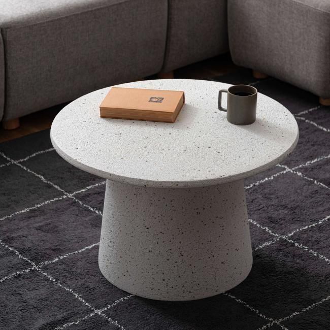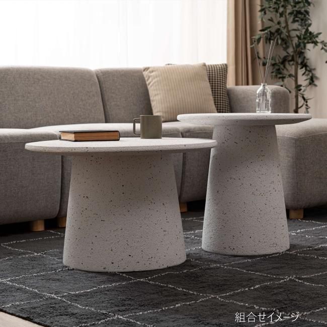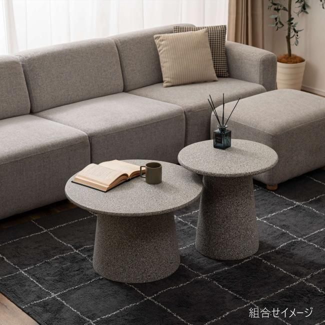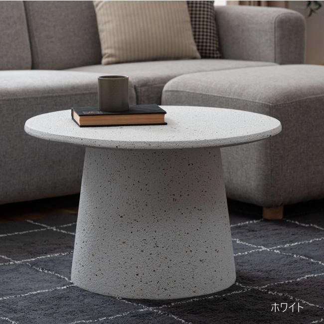 ザラりとした凹凸が美しいテラゾー柄が特徴のラウンドテーブル。